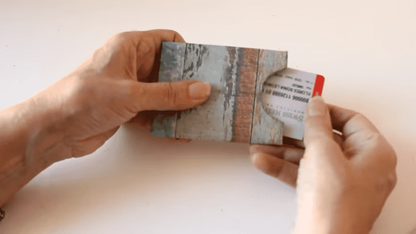 es muy importante pegar bien los bordes del papel para que no molesten cuando introduzcamos la tarjetadespués con cuidado le vamos a pasar un papel o un paño por encima para alisar y eliminar posibles burbujas o arrugas