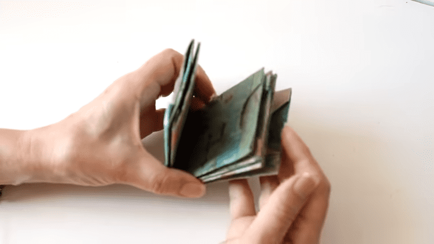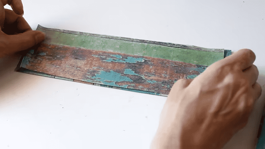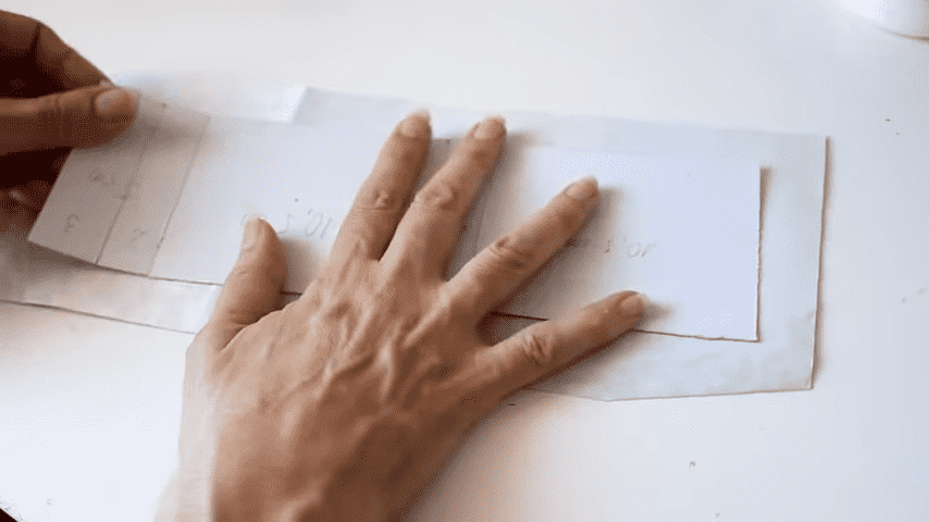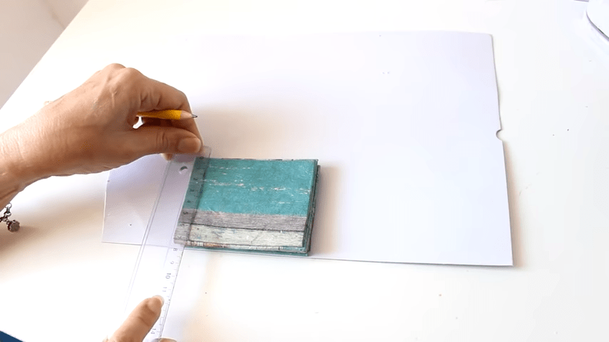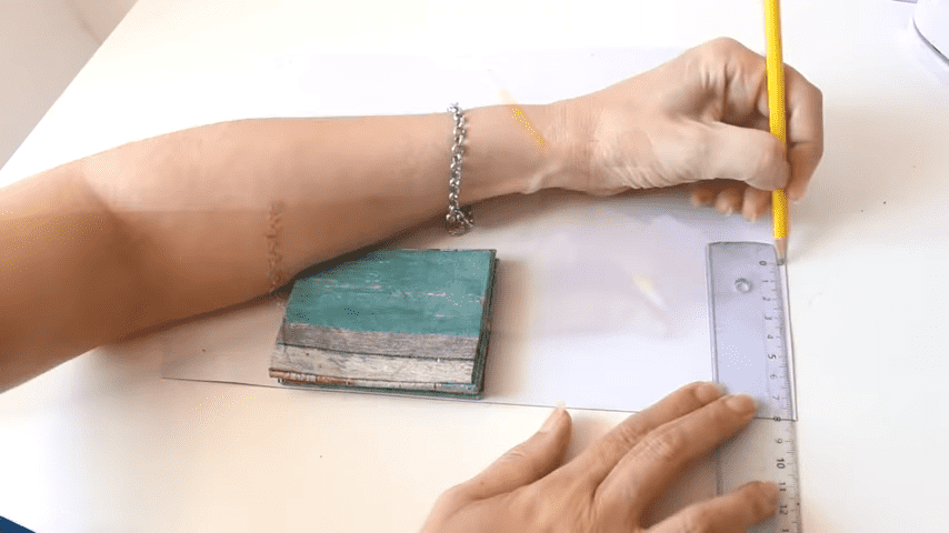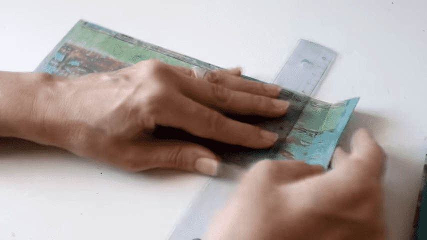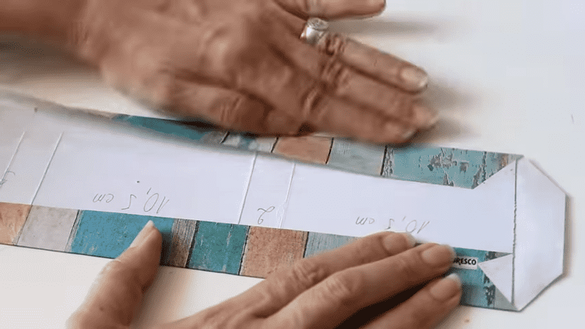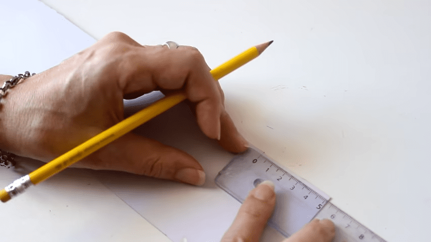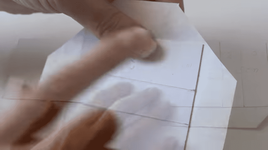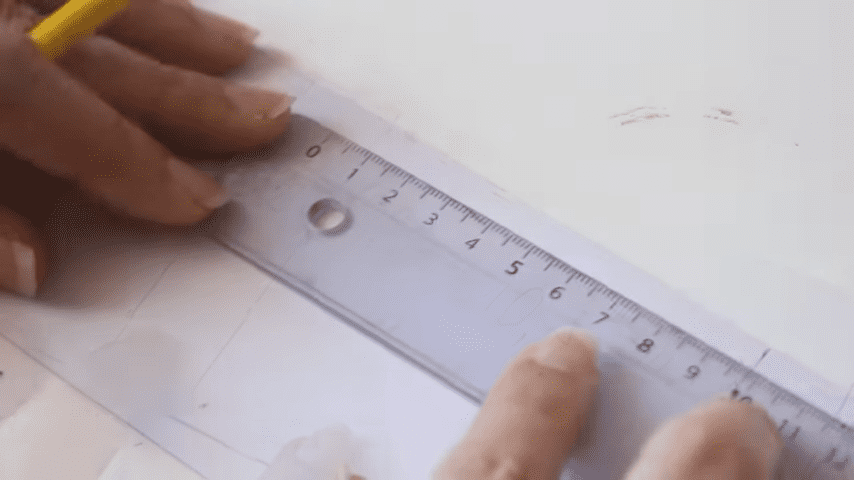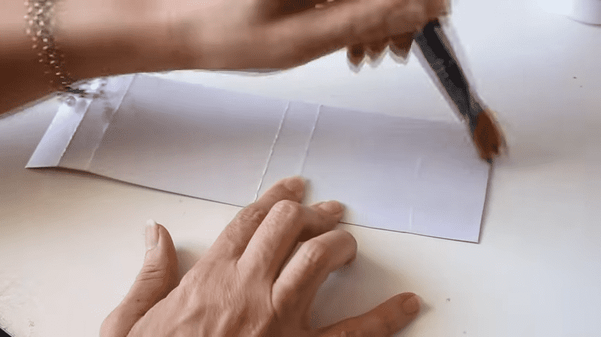 ahora voy a doblar con la regla en cada marca para formar los pliegues del estuche