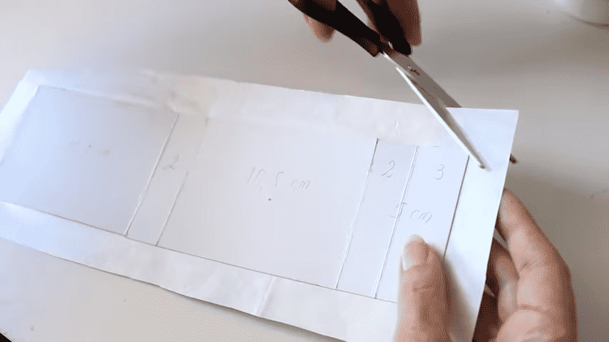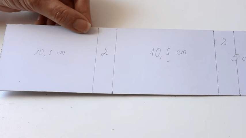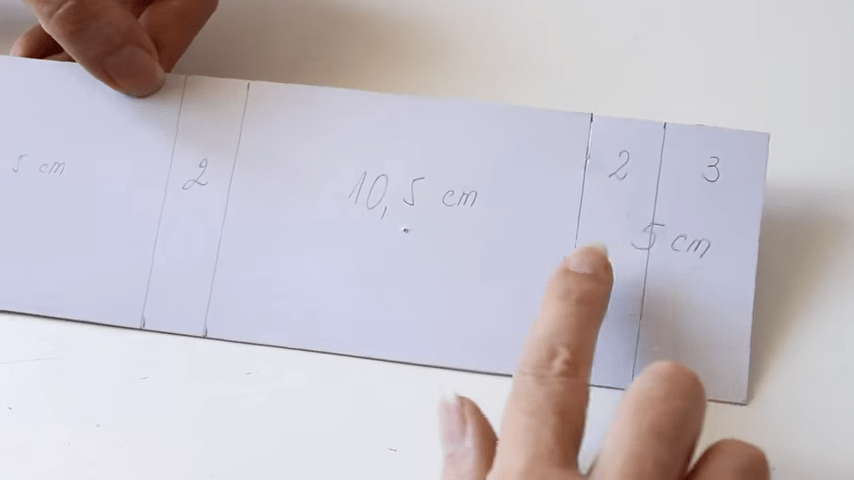 y por último nuevamente 10 cm y medio y por último nuevamente 10 centímetros y medio y voy a recortar el excedente entonces van a quedar dos partes de 10,5cm una de 2 cm y otra de 5 cm