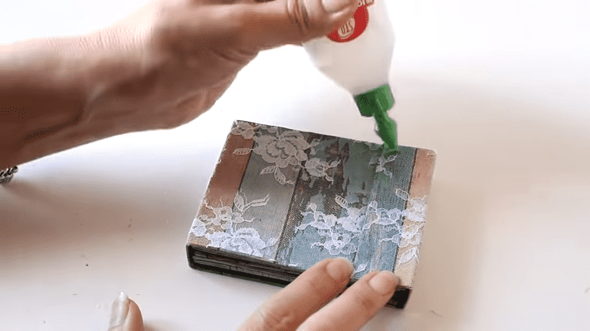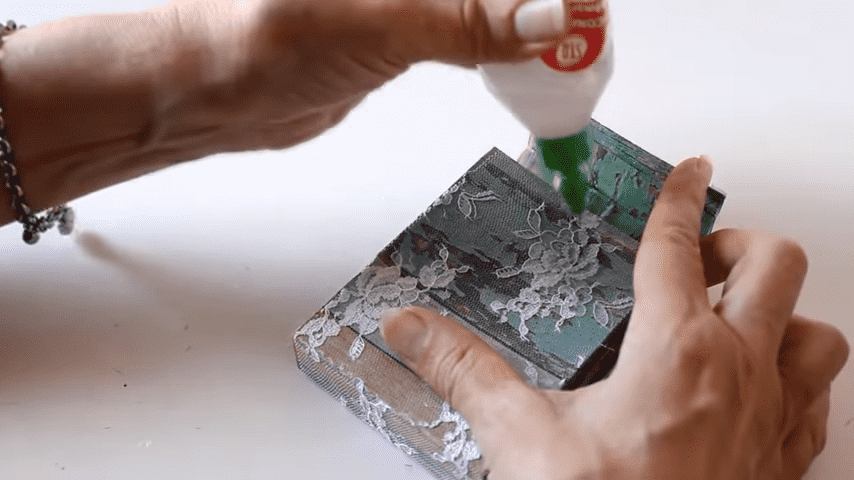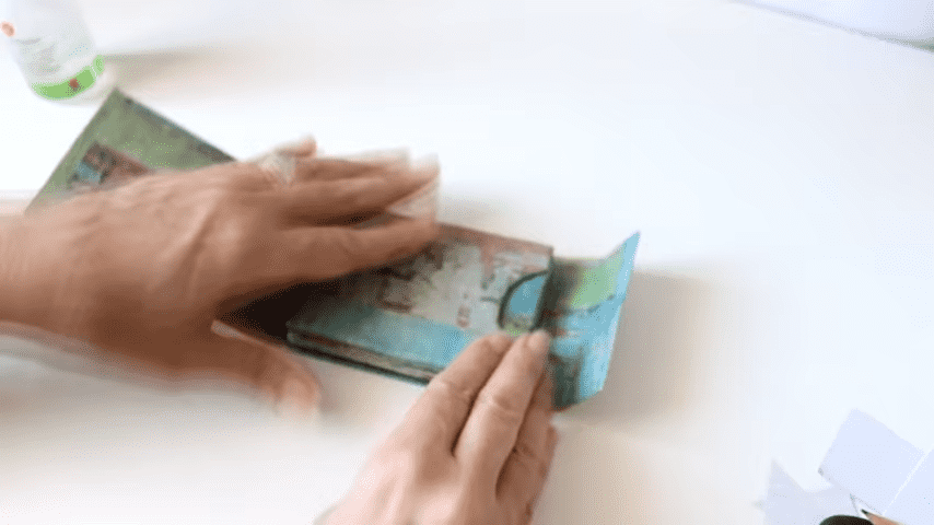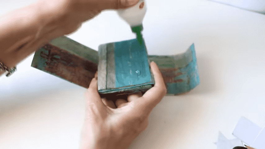 ahora con silicona fría voy a pegar los tarjeteros poniendo pegamento en el último