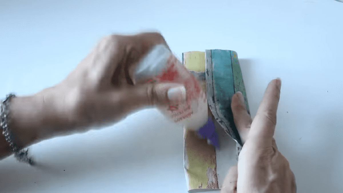 y en la parte donde están unidos voy a cerrar y acomodar para que todo quede bien en contacto con la silicona y con un peso encima voy a dejar secar