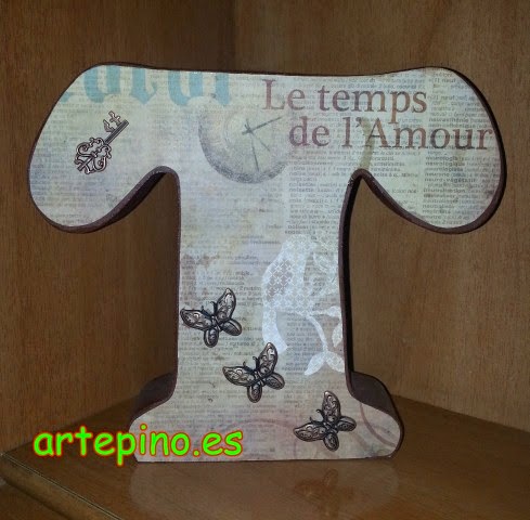 Esta letra hecha con la técnica del SCRAP la cual adorna una estantería: