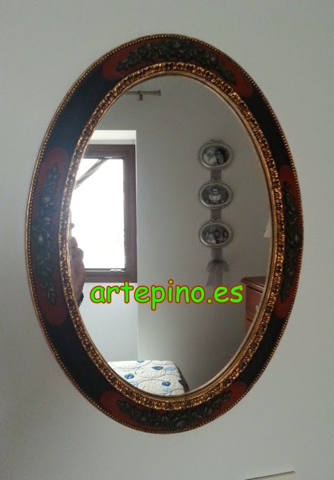 Un marco hecho en tinte con unos detalles de estaño labrado: