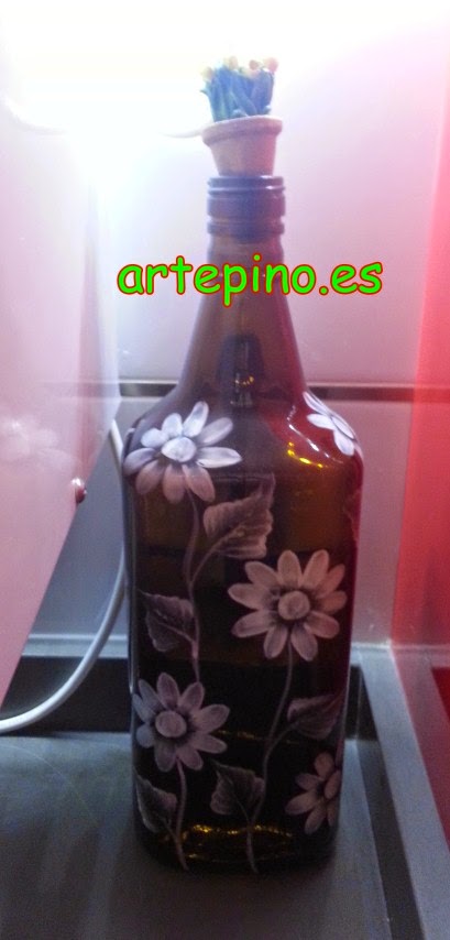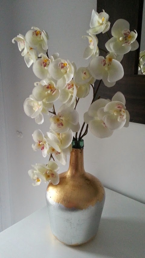 El jarrón es una botella de cristal con pan de oro y plata: