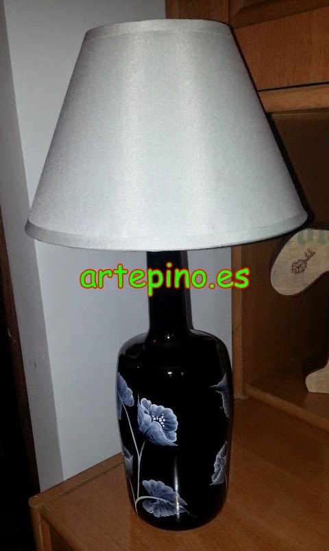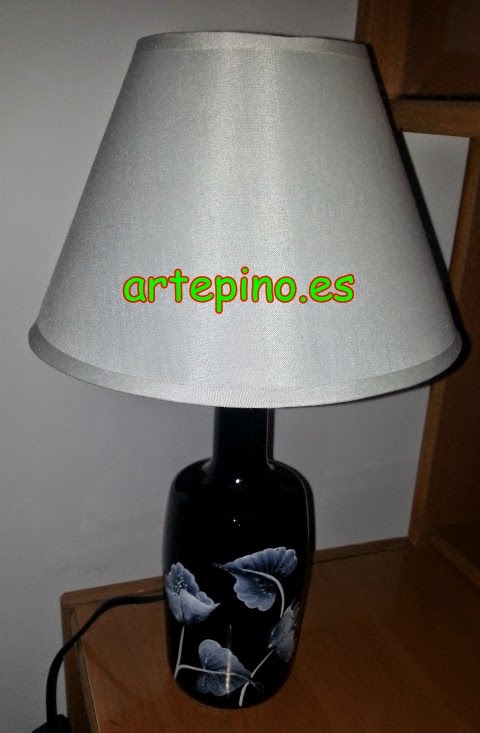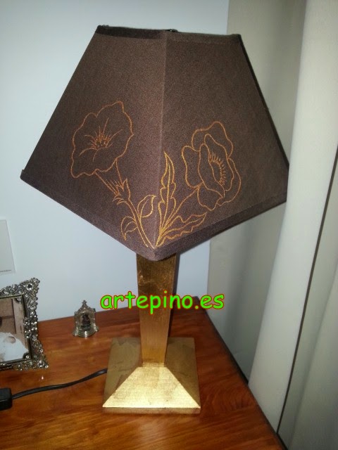Las lámparas de las mesitas de noche están hechas en pan de oro y a las pantallas le hemos pintado el contorno de unas flores: