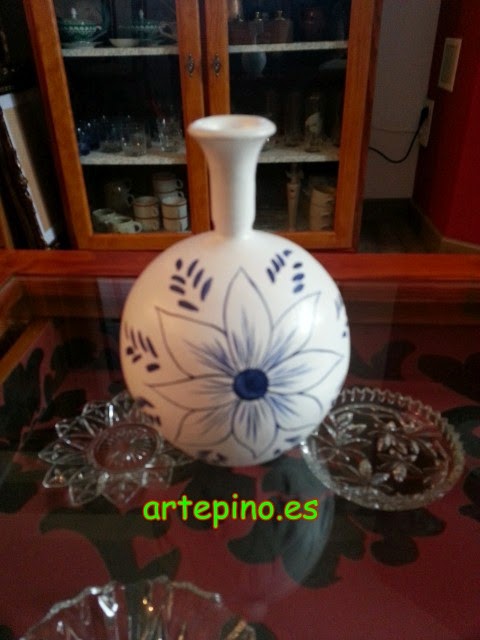 Este jarrón, fue restaurado, dándole un toque más moderno, pero manteniendo el dibujo del labrado que llevaba: