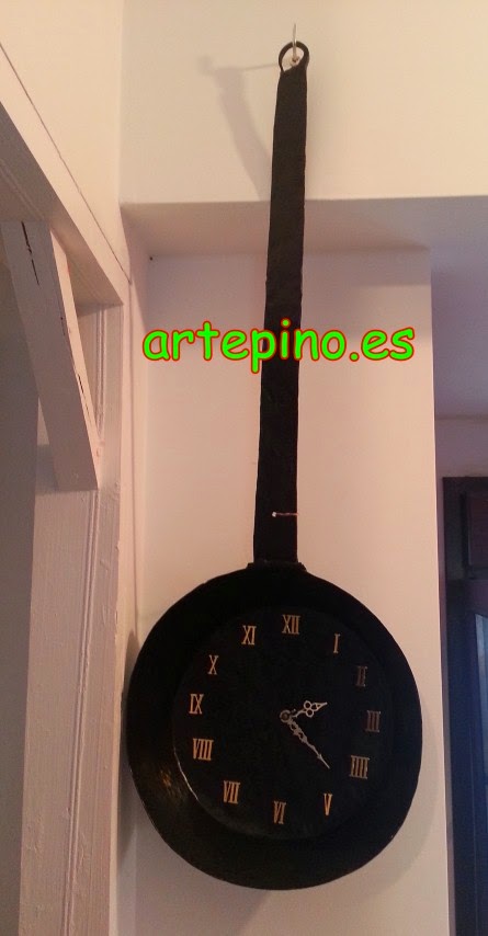 Ya en la zona de la cocina, nos vamos a encontrar este reloj tan original, realizado con una sartén antigua:
