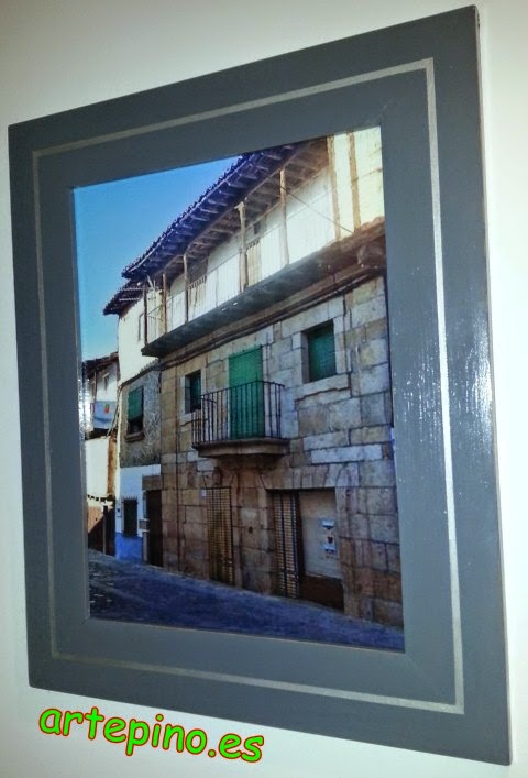 El segundo, lleva una foto de la casa antes de reformarse y esta metida en una marco de madera pintado en gris con una linea plateada: