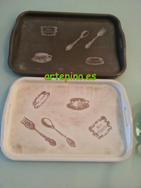 Ahora os voy a ir enseñando algunos adornos que hay puestos por el salón. Como estas dos bandejas a juego, que están estampadas con unos bonitos sellos: