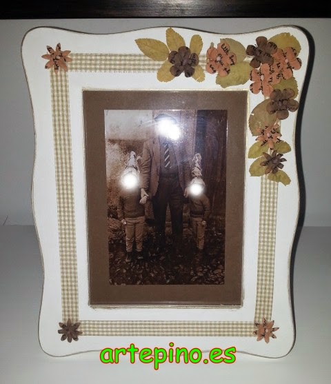 Este marco adornado con whasi-tape y con unas flores de papel: