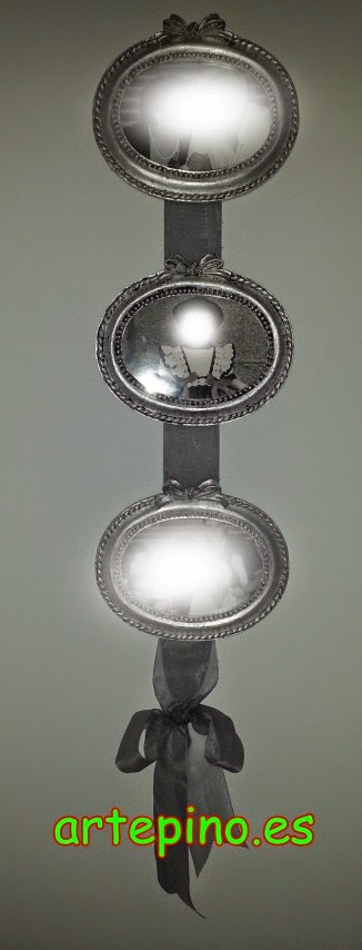 En una pared nos encontramos está composicion realizada con tres marcos de resina, los cuales hemos unido con una cinta ancha de organza: