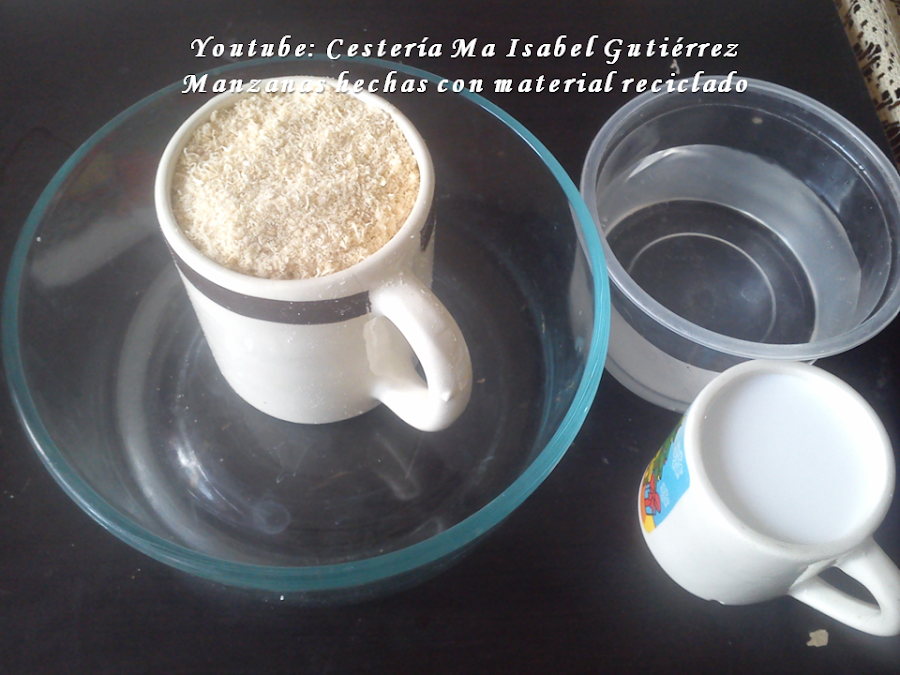 Esto es lo que necesitamos para hacer la masa: Aserrín, pegamento o cola blanca y agua...