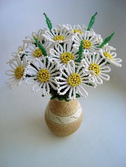 Hermosas y delicadas flores no-me-olvides de mostacillas para decorar el hogar. Manos a la obra. Para las flores necesitamos chaquiras o mostacillas de dos colores: celeste y amarillo para el centro y alambre fino. Simplemente sigan las indicaciones de las imágenes para tejer las flores y hojas. Los tallos forramos con el masking tape verde. Listo! Queda hermoso, no lo creen? La entrada se pu ...