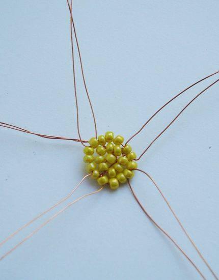 Paso a paso de cómo hacer una rosa de pétalos redondeados en abalorios, chaquiras o mostacillas