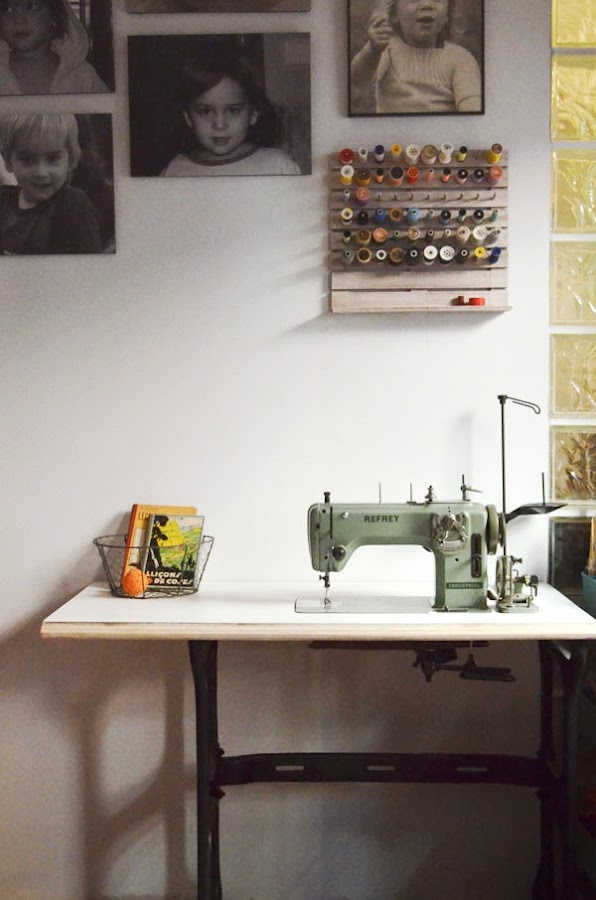 No puedo estar más orgullosa ni más contenta. Cuando hicimos las obras y tuve claro que me iba a quedar sin rincón de costura (barra ganchillo, barra biblioteca, barra cuarto para todo, barra basurero de la casa) empecé a hiperventilar. No sabía muy bien dónde iba a poder hacer mis proyectos, ni dónde iban a parar todas las cosas que tenía embutidas en el estudio. Pero ahora, a falta de arreglar un cable del motor de esta máquina y de comprarme una silla que sea cómoda y bonita, tengo un pequeño rincón de nuestra habitación habilitado como puesto de mando para la dominación mundial. Y ya estoy ideando mis primeros planes.