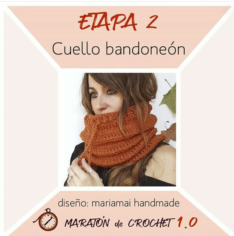 A través de Instagram participo en el primer maratón de crochet. María de https://linktr.ee/mariamaihandmade tejedora que nos ha presentado su trabajo. Se trata de un cuello bandoneón nos ha dado el patrón a todos los participantes que hemos tenido quince días para tejerlo y presentarlo.