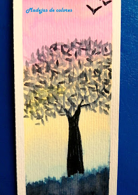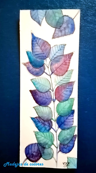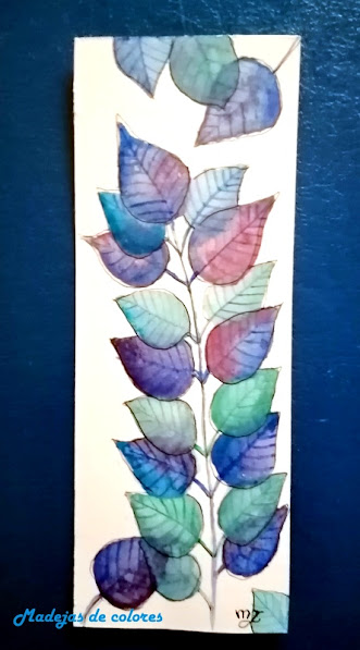 Una rama con diferentes tonos acuarelados, con transparencias superpuestas.
