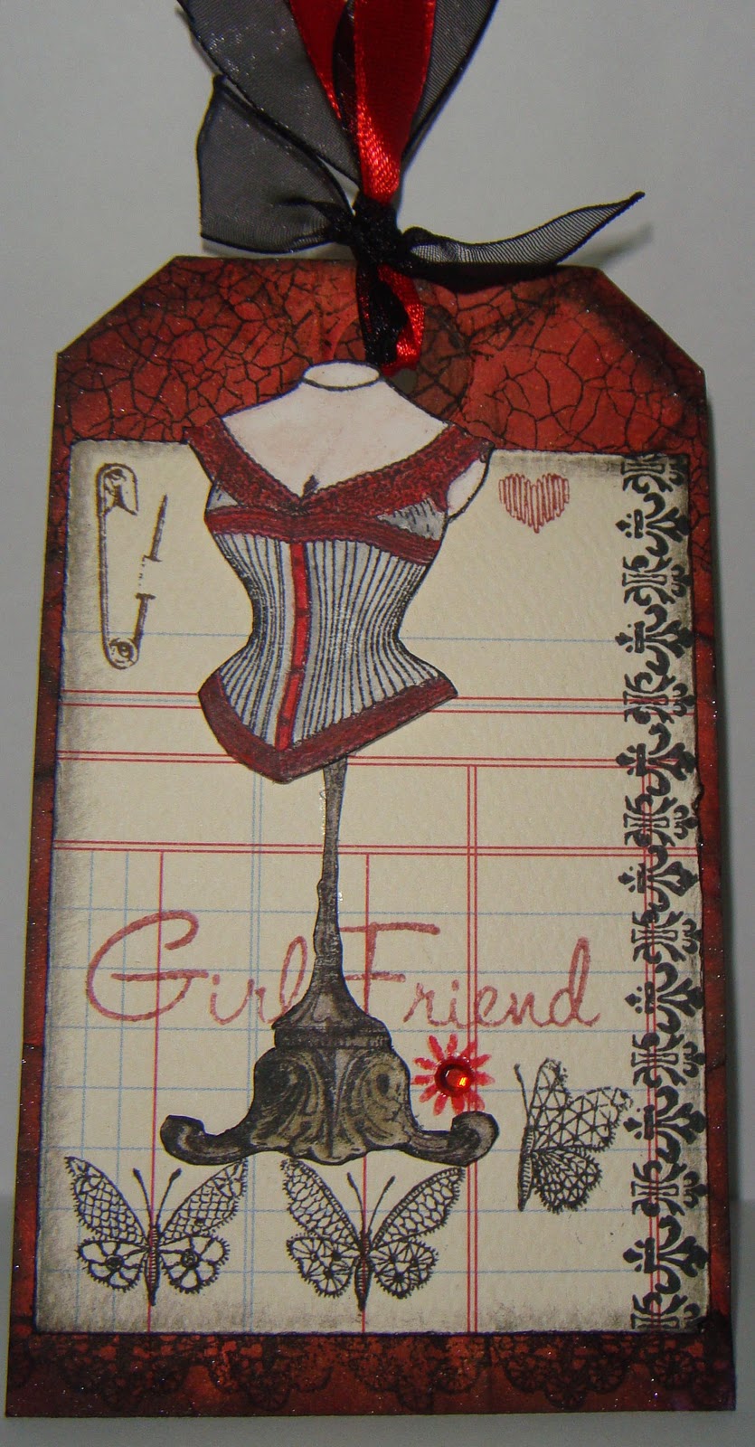 Los materiales que utilice fueron: papel de scrap de la marca Echo park, lápices acuarelables, tintas versafine color crimson red, onix black, vintage sepia y para entintar los bordes distress color walnut stain. Los sellos utilizados son de la marca Craft secrets clear art stamps llamado sew special: