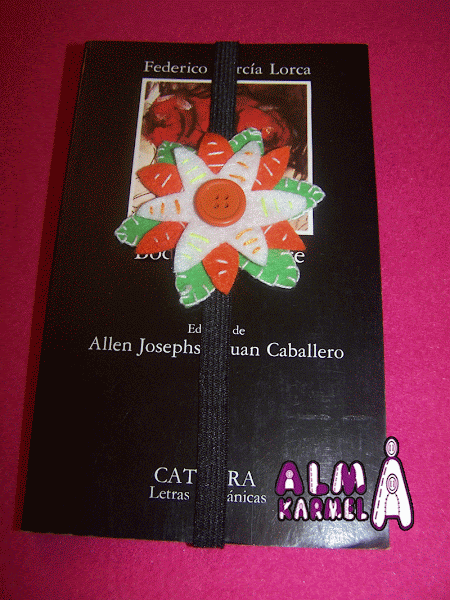 Realizados con goma elástica, que como ya dije, me parecen muy versátiles, y en esta ocasión me he decantado por unas flores, de diferente manera y materiales, pero que dan un toque de color a este otoño, que se vuelve de tonos marrones y rojizos, con la caída de las hojas.