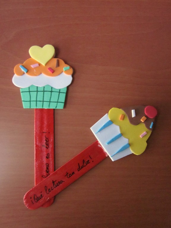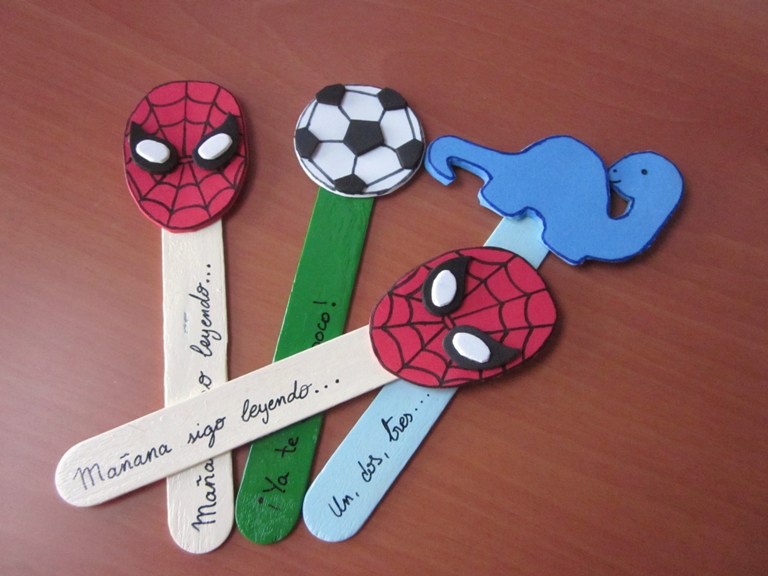 Hola, Os quiero mostrar unos marcapáginas para animar a los niós y niñas a leer. Hay variedad para elegir: Bob Esponja, Minion, Pepa Pig, Hello Kitty... Estan hechos con goma Eva.