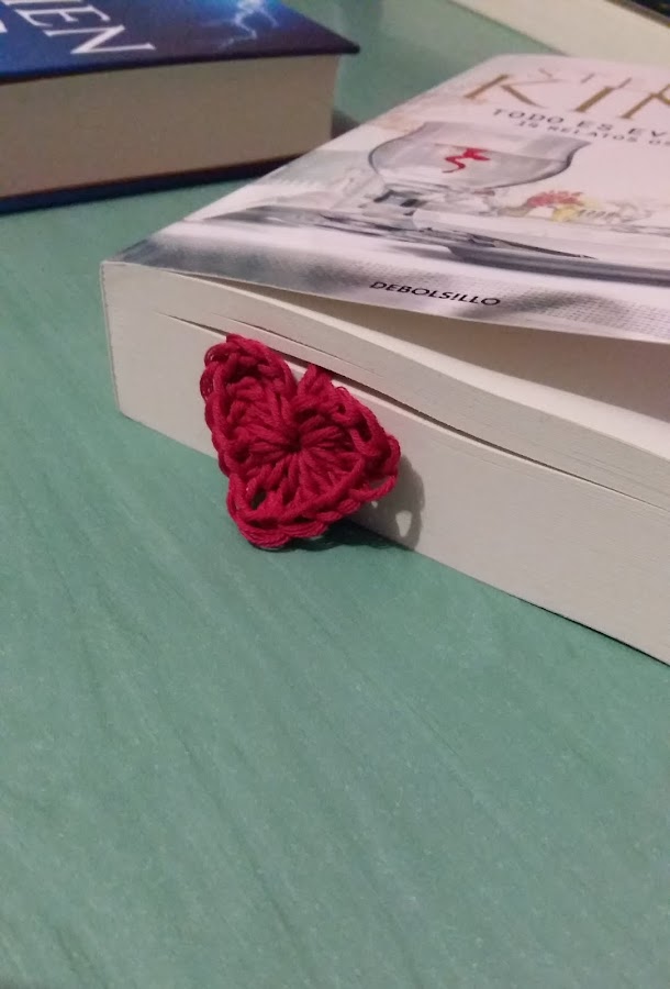 Ahora hacemos tantas cadenetas como de largo queramos el marcapáginas y cerramos hilo dejando un hilo largo porque coseremos el otro corazón.