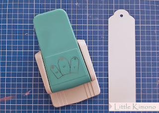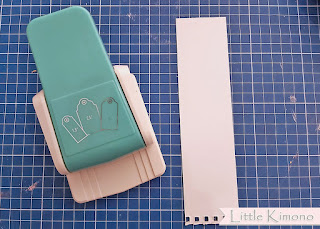 1. Primero vamos a cortar el marcapáginas con la medida intermedia de la troqueladora, cortamos una tira de 2" y metemos en la troqueladora