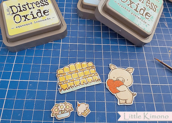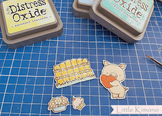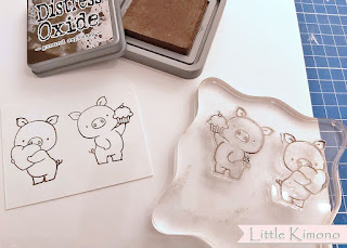 3. Llega el momento de decorar, podemos usar die cuts, siluetas de madera o sellos, yo opté esta vez por usar mis sellitos^^ escogí los cerditos