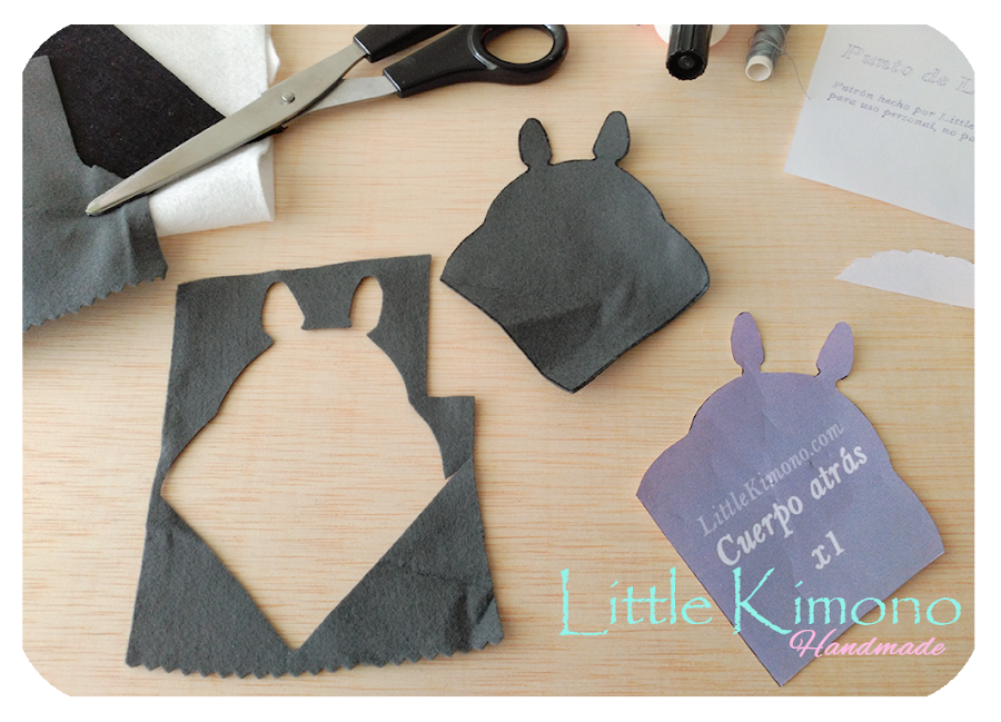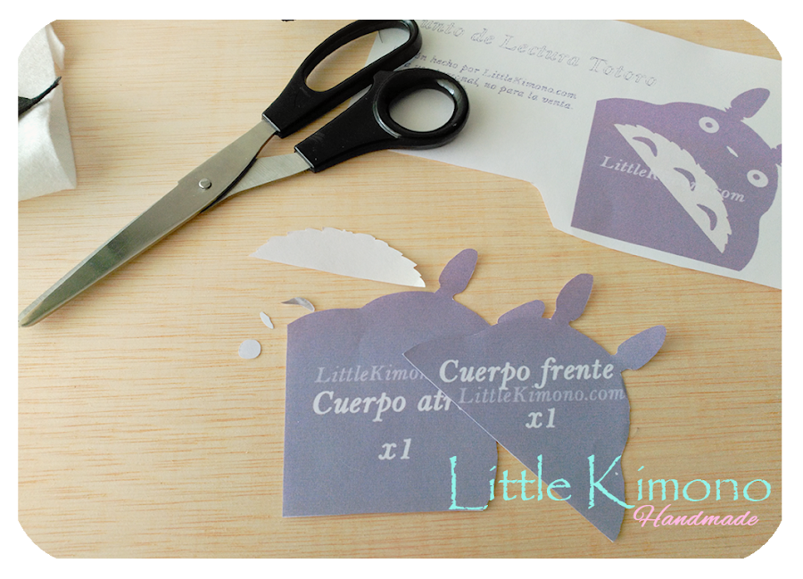 1. Descargar (pinchando en la imagen), imprimir y cortar las piezas del patrón del bookmark Totoro