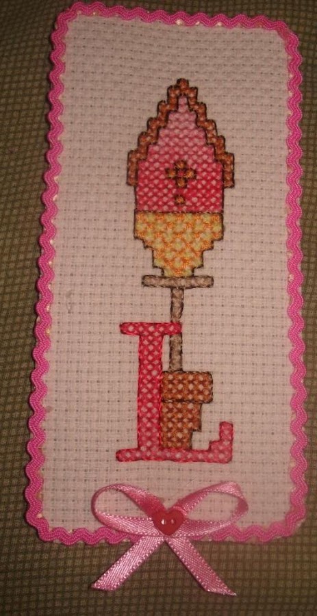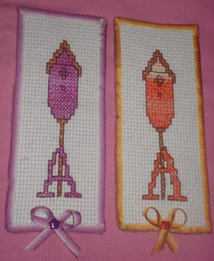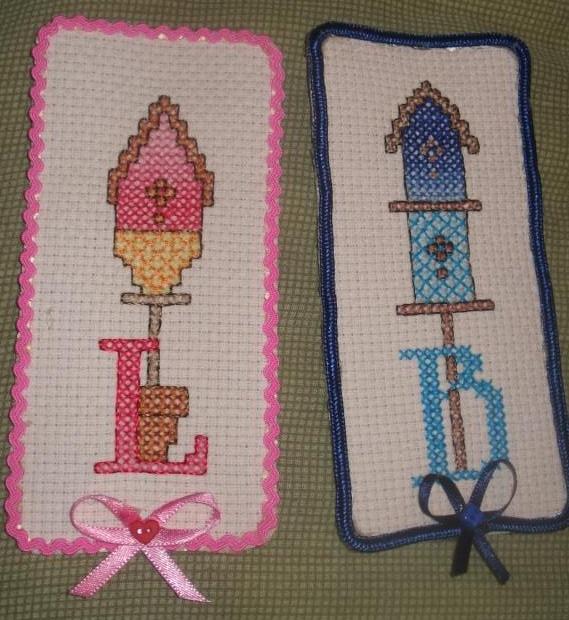 Estos recuerdos los hice para mi sobrina Gaby, fui su madrina de Confirmación. Creo que quedaron bonitos. Fue una combinación de punto de cruz,con hardanger.