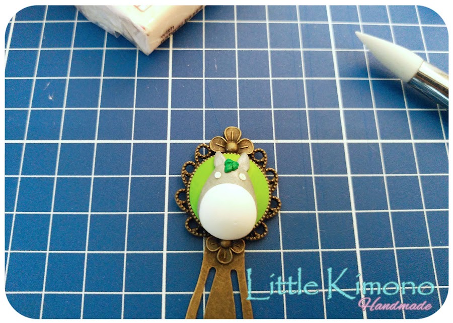 Lo primero es cubrir la base con un poco de fimo, yo usé verde, color que caracteriza mucho a Totoro porque vive en el bosque ^^