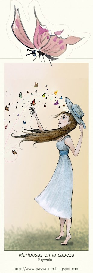 El regalillo nos es otro que un marcapáginas (a ver si fomentamos así un poquito la lectura), realizado en base a una imagen digital que dibujé hace tiempo y que gustó bastante. Solo tenéis que descargarlo, imprimirlo y recortarlo y ya está, listo para usar! Queda muy mono pues sobresale la mariposa por encima del libro y parece que esté posada sobre él.