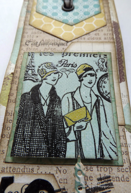 Y este fue el segundo que realicé. Papel base de Prima, aunque no recuerdo nombres, y los de tonos amarillos y azules, recortados a modo de pestañas son Follow Your Heart "Be Amazing" HONEY BLUE de MME.