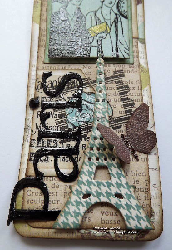 La Torre Eiffel es un troquel de Die-namics.La mariposa recortada del papel base de Prima.