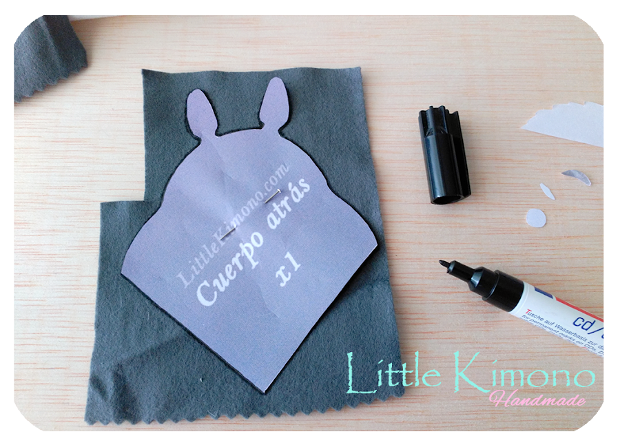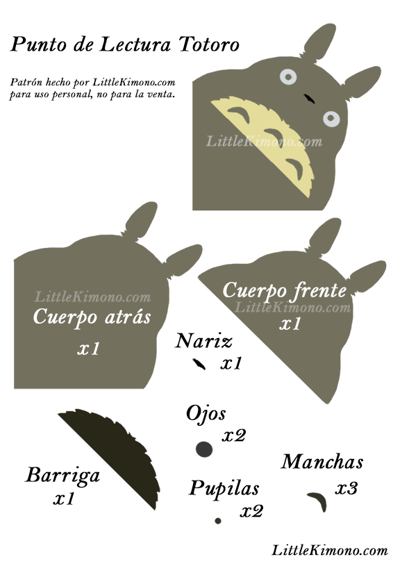 1. Descargar (pinchando en la imagen), imprimir y cortar las piezas del patrón del bookmark Totoro