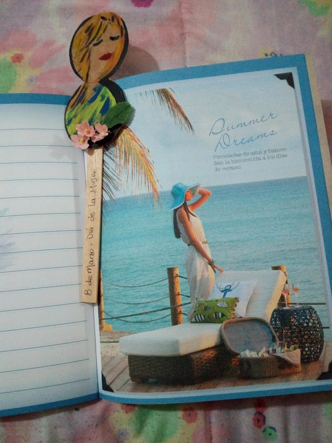 Sobre el palito de madera escribí la fecha y el día que celebramos. Pegué sobre el marcapaginas y listo.