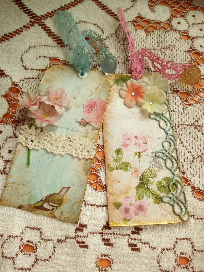 Aprovecho unos adornos que tenia sobrantes de otros trabajos, realizados con pasta flexible y los voy pegando sobre mis marcapáginas.