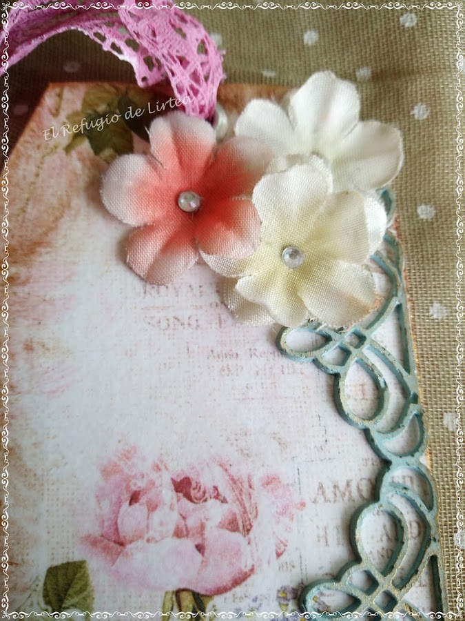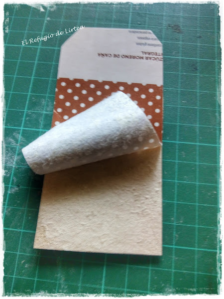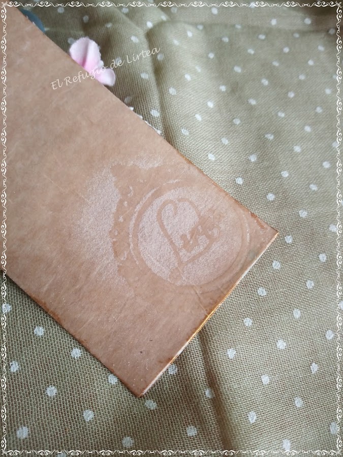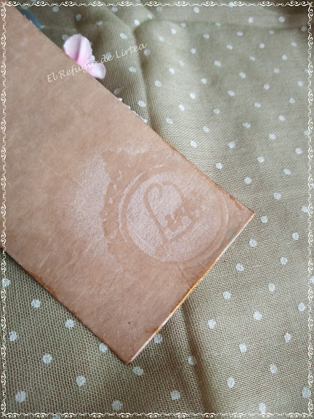 Por la parte posterior puse mi sello y envejecí con tinta distress en color marrón