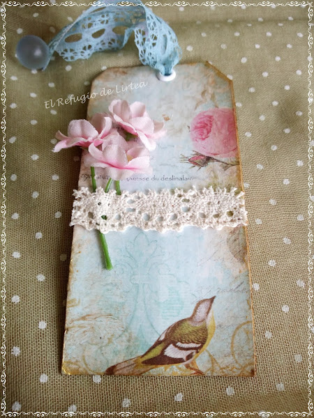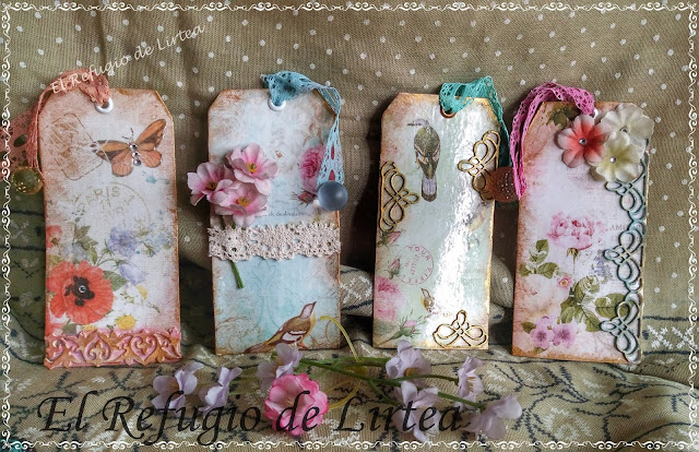 Primero utilizo unas tiras de encaje que he teñido con pintura acrílica aguada,utilizo los colores acordes a las imágenes.