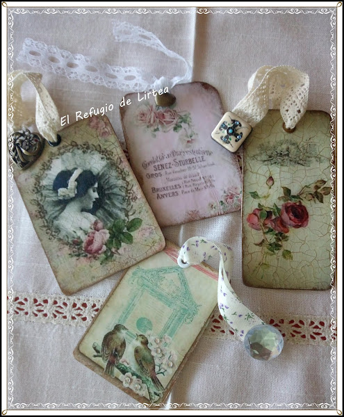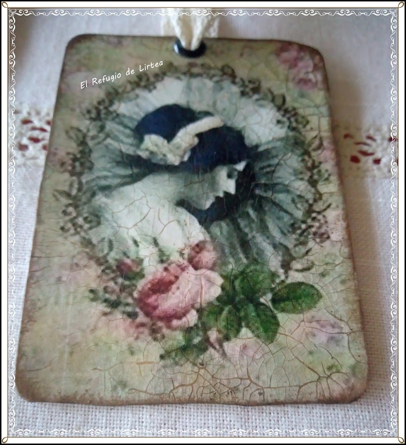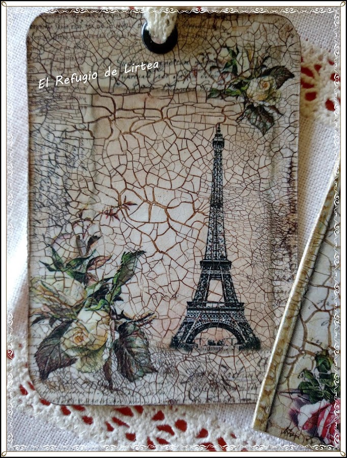 Unos los craquelé, ( una vez pegados, les aplico el craquelador paso 1 y una vez seco doy craquelador paso 2, dejo secar y para que la grieta sea más visible aplico pátina o betún de judea, retirando el exceso con una toallita de bebe).