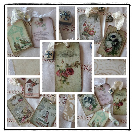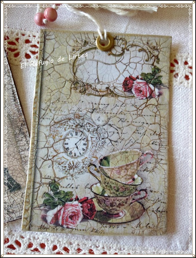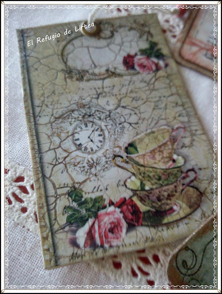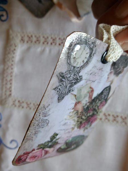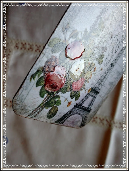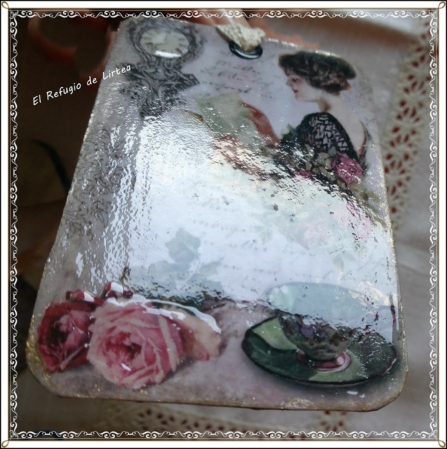 Otros, una vez pegados le pongo glossing en algunas partes para realzar y dar volumen a los motivos, como en estas flores, en la imagen de un reloj que podéis ver en estas fotos.