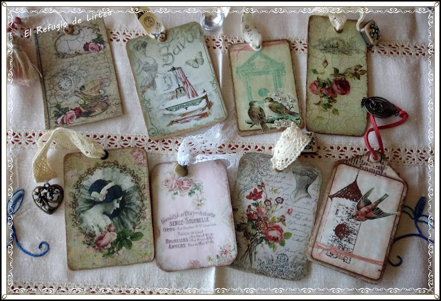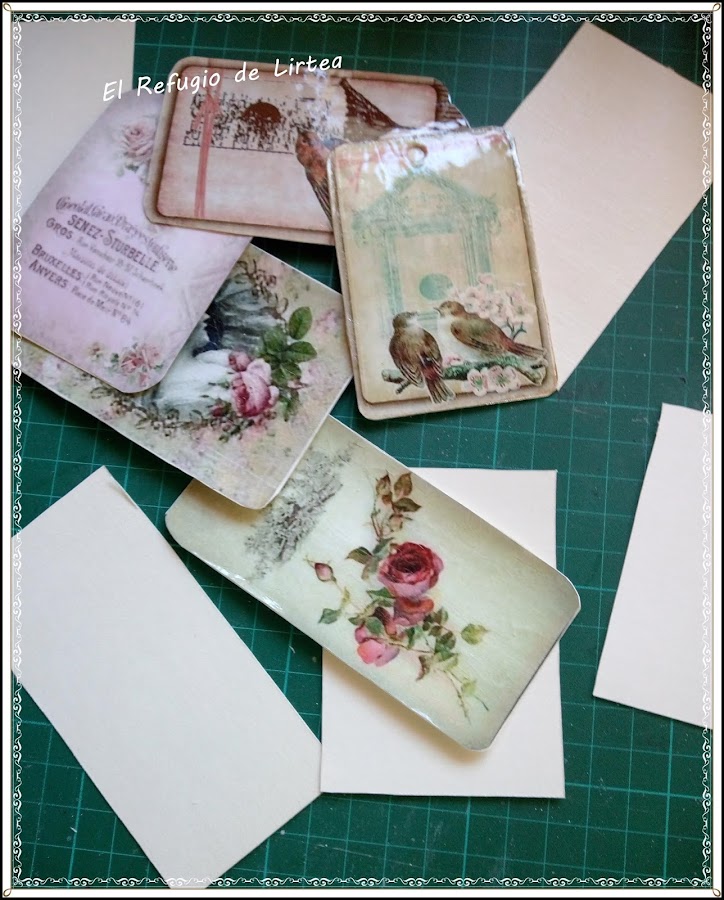 Estos 5 primeros, están realizados con papel scrap. Es un papel impreso de bastante grosor, pero aún así yo los pegué sobre papel de gran gramaje, concretamente sobre papel de dibujo, así les dí más cuerpo.