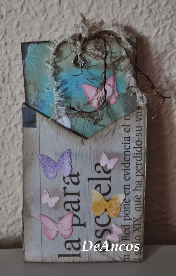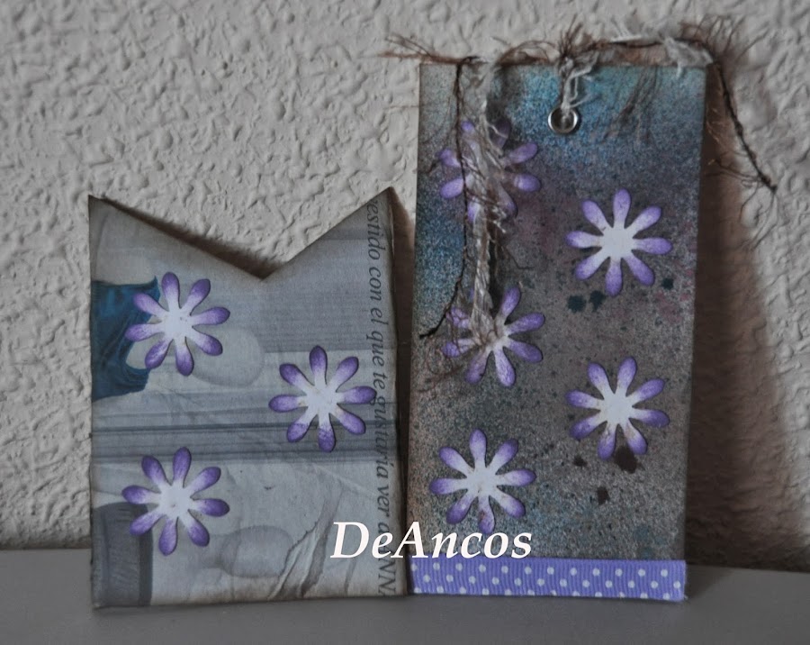 Estos tags, con su sobre a juego, hecho a partir de rollos de papel higiénico, los regalé a las compañeras de mi suegra en la residencia donde estaba. Se quedaron perplejas porque debe ser que no están acostumbradas a regalos "porque sí".