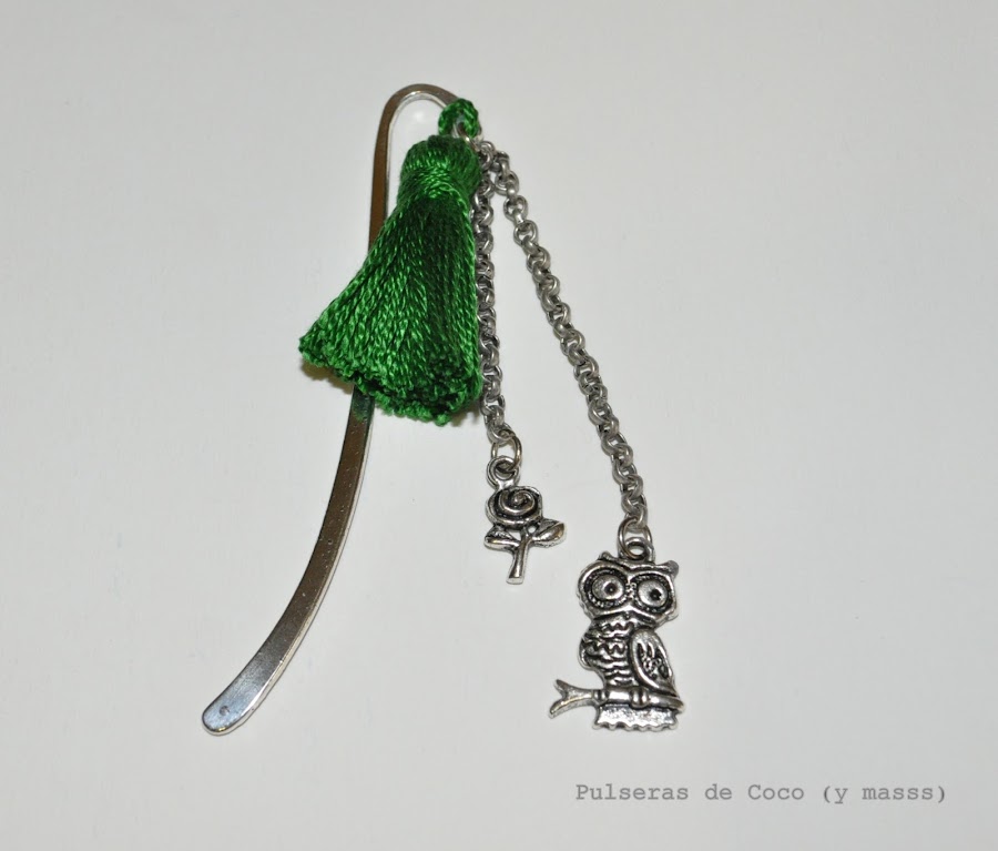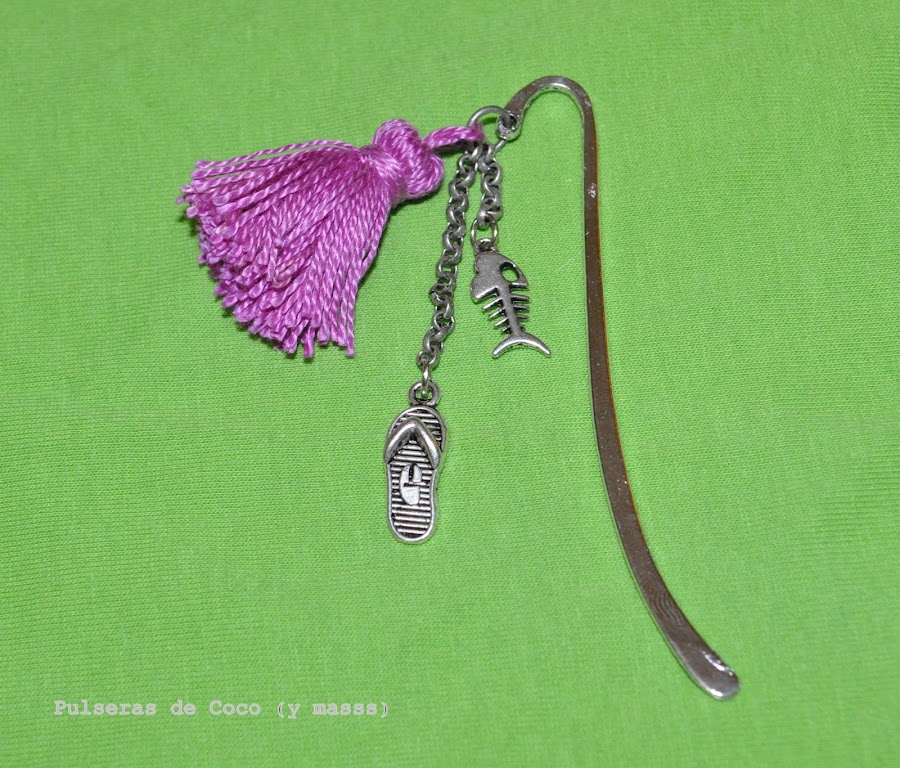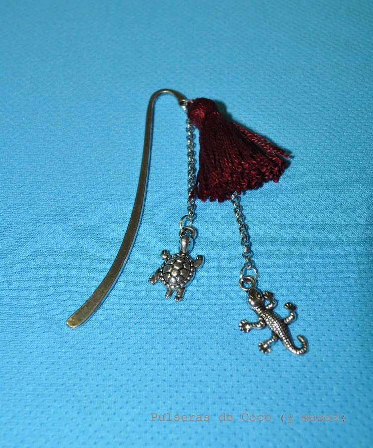 Muchos marcapáginas son de papel (que se rompen facilmente), y los metálicos, que habiamos comprado en nuestros viajes, son muy caros y simples. Así que se nos ocurrió hacer unos personalizados, con colgates de muchisimos tipos, pompones, lazos...que quedan perfectos para la lectura de la mesita de noche y para regalarlos.