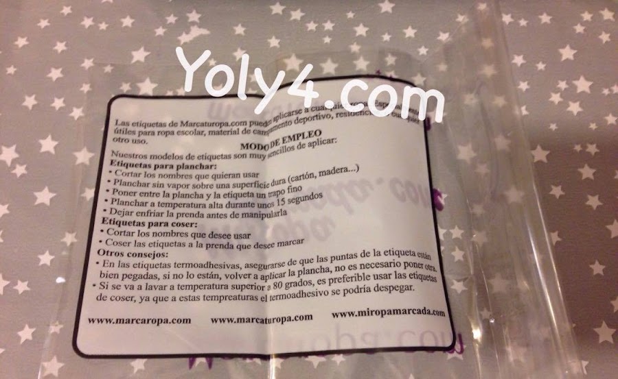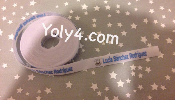 Desde la pagina web, como ya he dicho anteriormente podemos elegir las etiquetas que necesitamos, yo las pedí con el nombre y apellidos de mi niña y un conejito, las letras en azul, ya que es su color favorito. Pero cada uno puede elegir al gusto o según necesidad.