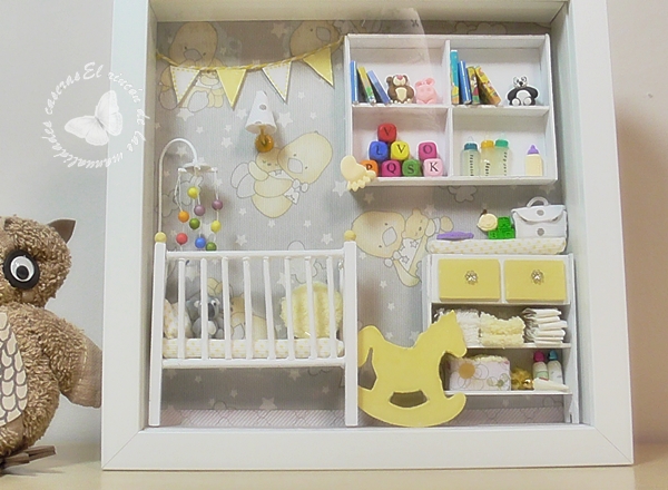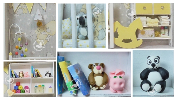 Para este trabajo he tenido ayuda, no se si lo sabéis y si no os vais a enterar ahora que no se me da nada bien modelar, el problema lo tenía en conseguir hacer los peluches, ¿amigurumi, pompones?, no sé, no me convencía así que un día hablando con Yolanda, que ya sabéis que esta metida en el mundo youtube, le propuse que hiciese un vídeo haciendo animalitos en miniatura y que me los mandase para mi cuadro (que morro jajaja) como una especie de colaboración pero sin serlo, ya que no publicamos el mismo día. Es una artista modelando y haces maravillas con la pasta de modelar y como es un solete le pareció genial, de la que me has librado Yolanda jajaja, así que empezó a modelar y me mando 4 animalitos super lindos y alguna chuche más, ¿que os parecen?