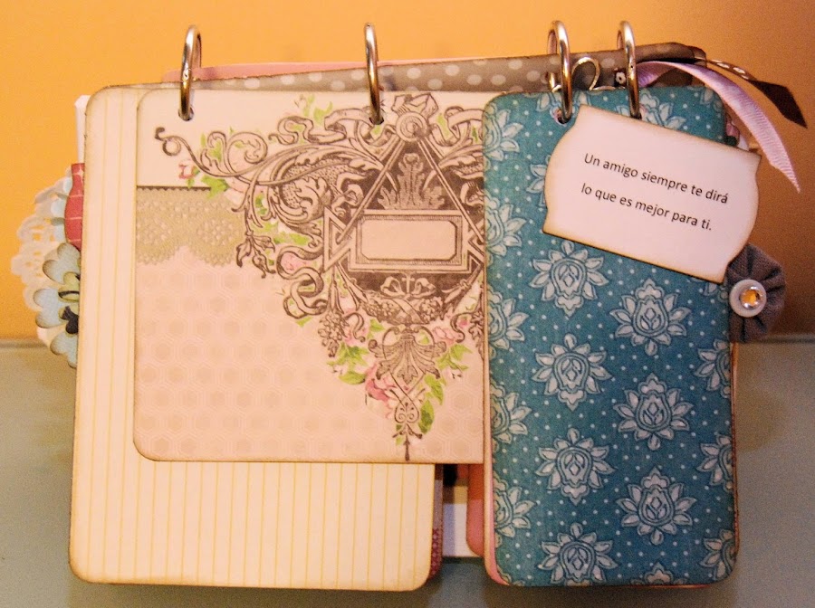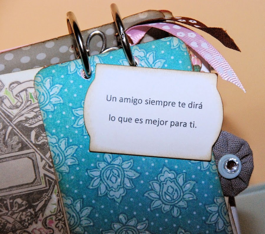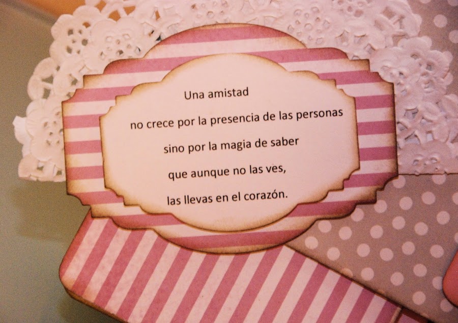 Papeles, tintas, lazos, troqueles, etiquetas, charm, anillas, marco,.... y frases de amistad.