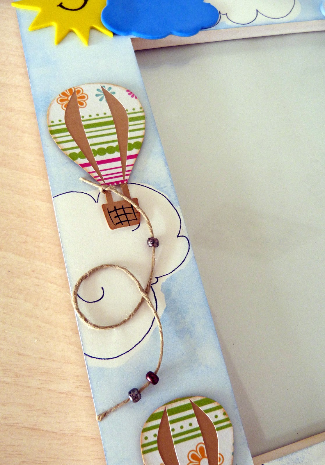 Los globos son recortes de la Craft y un par de ellos llevan un cordón con abalorios.