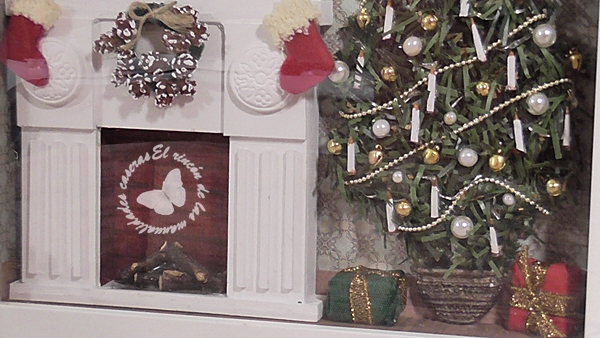 Y bueno la pieza estrella del marco, una chimenea, decorada con los calcetines que espero que Santa me llene de regalos jajaja.