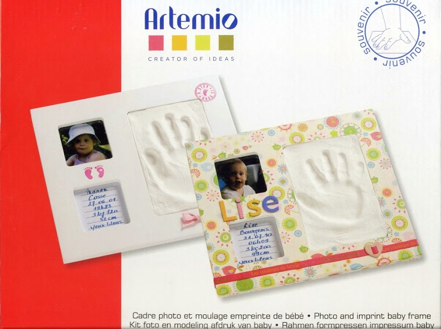 Os contaba la semana pasada que este marco era diferente y es porque tiene hueco para dejar la "huella" del recién nacido. Si, si, como lo habéis leído; viene con una masilla que al mojarla se ablanda y es entonces cuando puedes poner la mano encima (¿que prefieres el pie? pues también!! jeje)