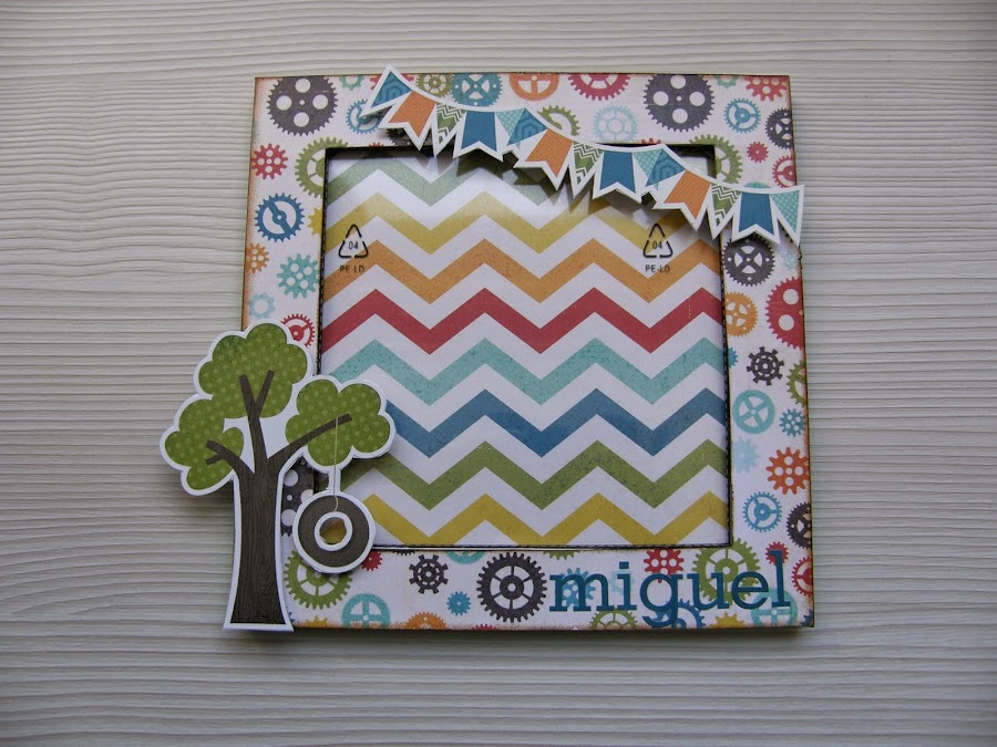 Para los chicos siempre me cuesta más hacer trabajos, dándole vueltas se me ocurrió alterar un marco y aquí esta!!!!
